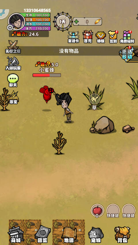 2、外出采集时,主角必须通过吃喝来恢复饱腹度,不然就会死亡并丢失材料。