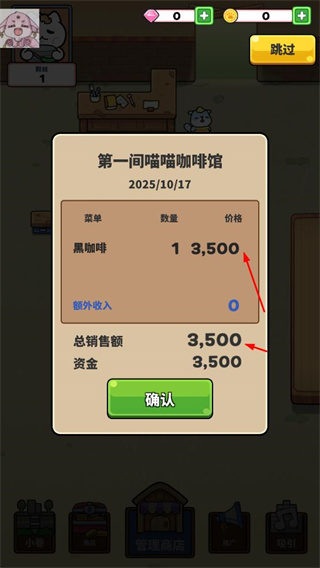 2、客人完成消费后,咖啡馆获取销售额与资金,以此积累资源,推动咖啡馆发展。