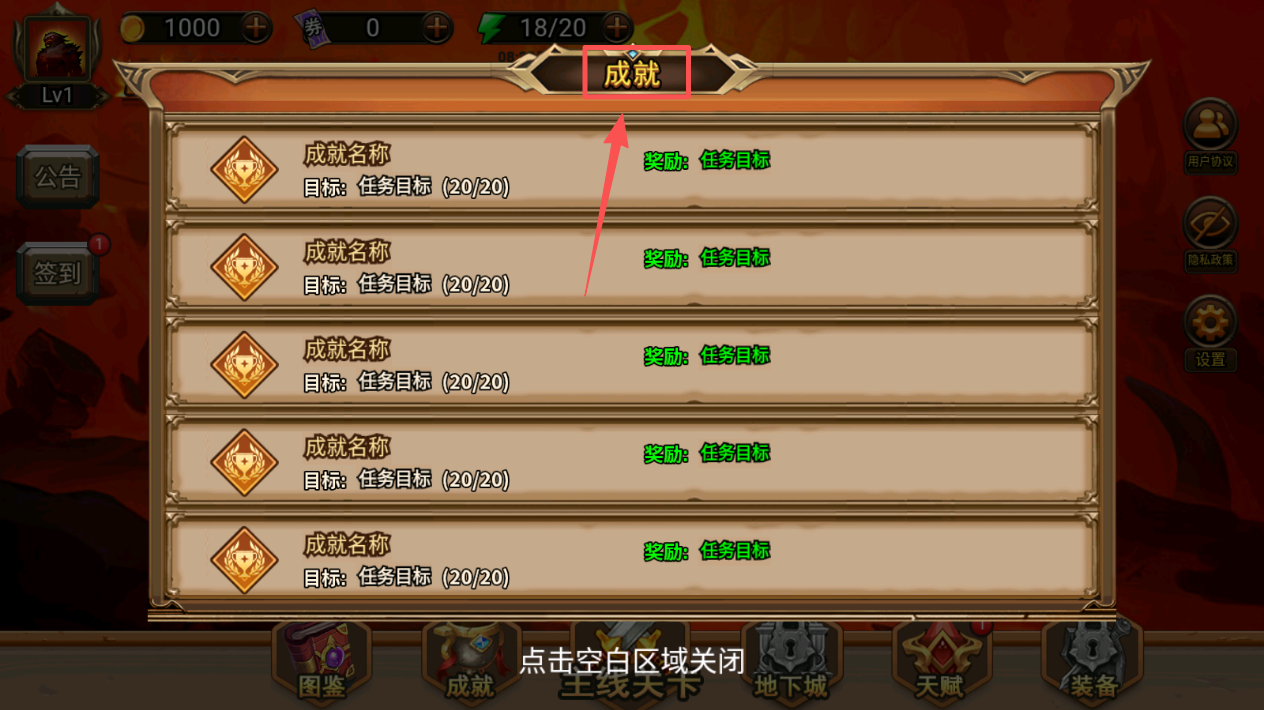 2、查看成就列表,了解并完成各项任务目标。