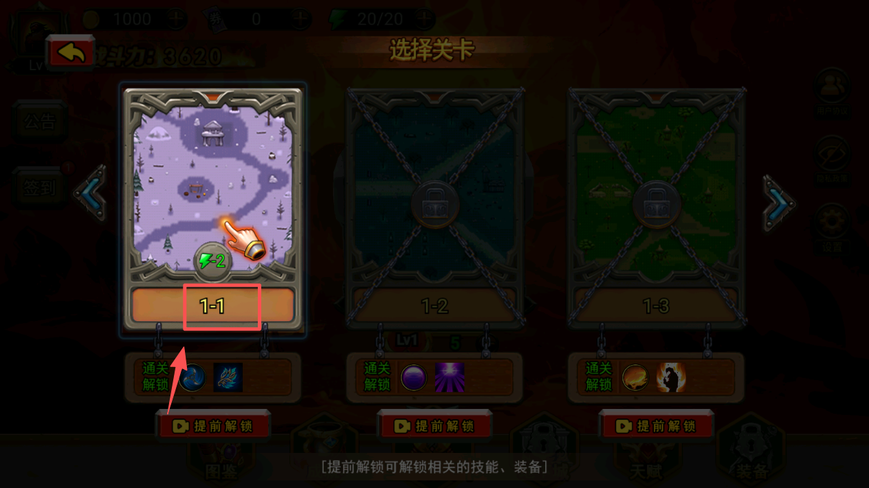 1、点击关卡选择进入,开始你的冒险旅程。
