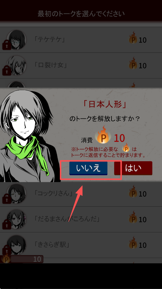 4、消耗10点数解锁“日本人形”角色,点击“いいえ”完成选择。