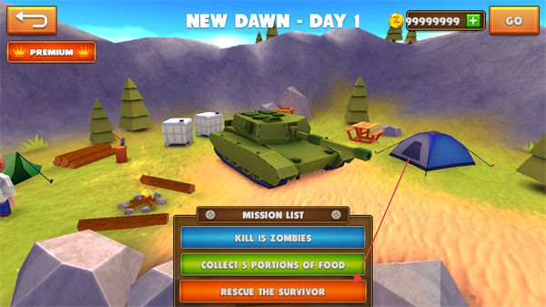 在NEWDAWN-DAY1这个场景里,你需要驾驶坦克去完成击杀僵尸、收集食物以及营救幸存者之类的任务。