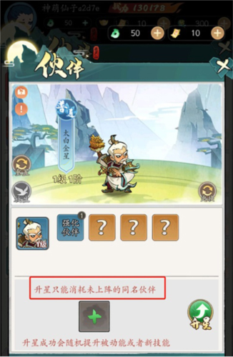 重复获取的伙伴能够进行升星操作,升星不仅会增强伙伴的属性加成,还会提升其被动技能,而对高星级伙伴进行升星时,还会额外增加该伙伴对应的星级。