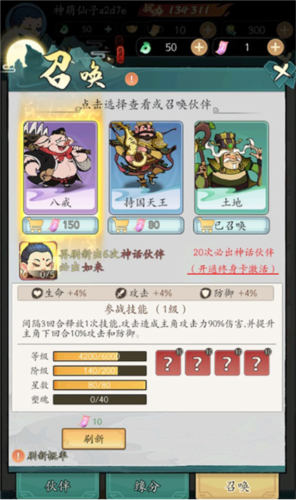 在召唤伙伴的界面里,每次都会有3只伙伴出现,使用请神符就能刷新当前显示的伙伴。