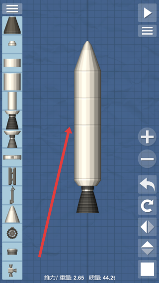 进入搭建界面后,从左侧栏挑选所需组件,依照箭头提示拼接航天器结构,对动力输出、整体配重等关键指标进行调节,从而完成初步的框架搭建。
