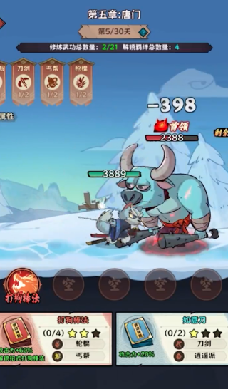 4、肉鸽冒险:每次重生,武学配置都会重置,让你体验不一样的修炼路径。