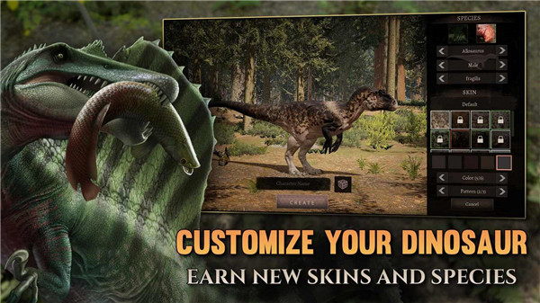 游戏为玩家打造的恐龙皮肤定制系统十分独特,其呈现的皮肤效果更为精致,能让玩家塑造出独一无二的恐龙形象。