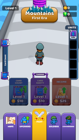 3. 借助收集卡牌,提高军官召集火柴人士兵的数量,并加快冷却速度。