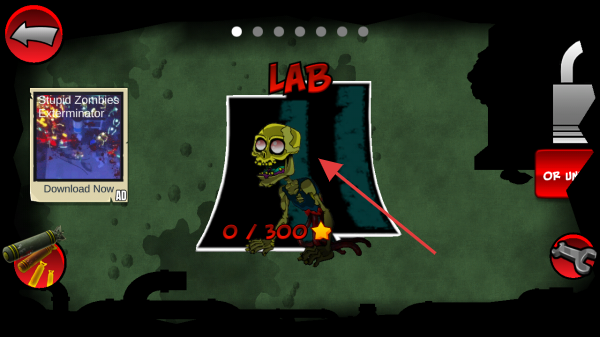 2、在关卡选择界面,挑选标有“LAB”的实验室关卡,此关卡的目标是消灭300只僵尸,点击僵尸图标即可进入该场景展开战斗。