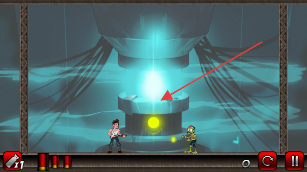 3、进入战斗后,留意箭头所指的发光装置,使用武器向僵尸开火,同时借助场景中的机关或道具,全力守护该装置并歼灭敌人。